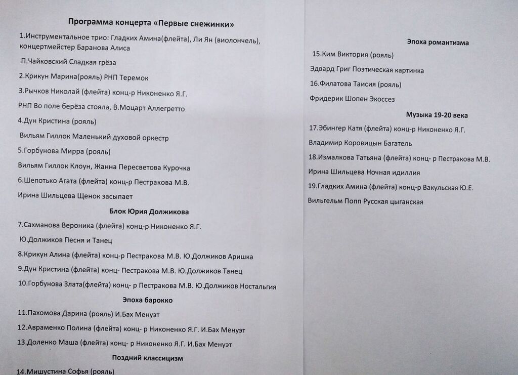 Все ученики преподавателей Алышевой Ирины Викторовны, Пестраковой Марины Викторовны, Гладких Елены Александровны участвовали в этом концерте. Они исполнили произведения русских и зарубежных композиторов, классиков и современников.